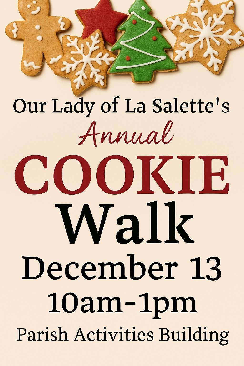 We will have coffee, tea, and hot cocoa along with treats to enjoy as we visit with our fellow parishioners.